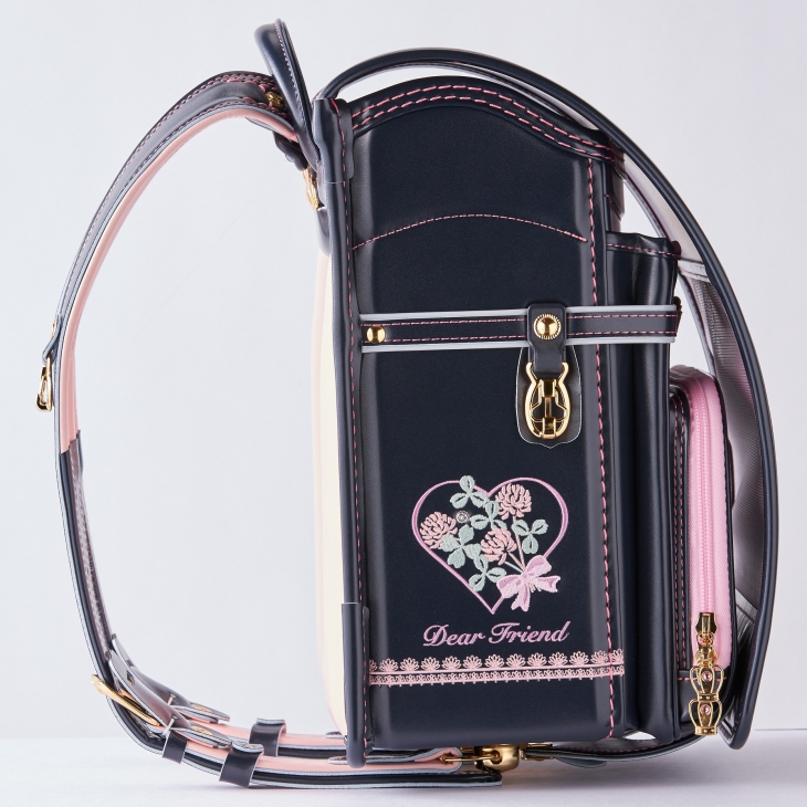 幸せを運んでくれると言われるクローバーを刺繍でサイドポケットに