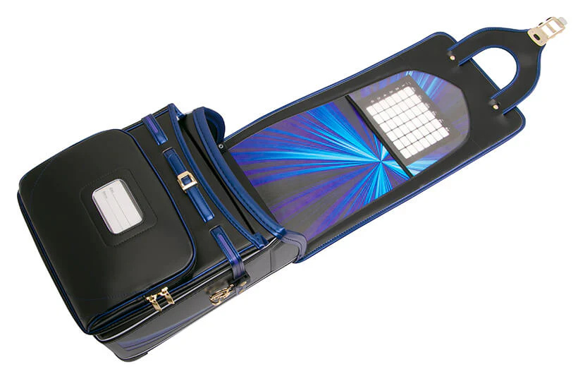 3色の選べる革ネームにお名前をレーザー刻印しお取り付け致します(無料サービス)