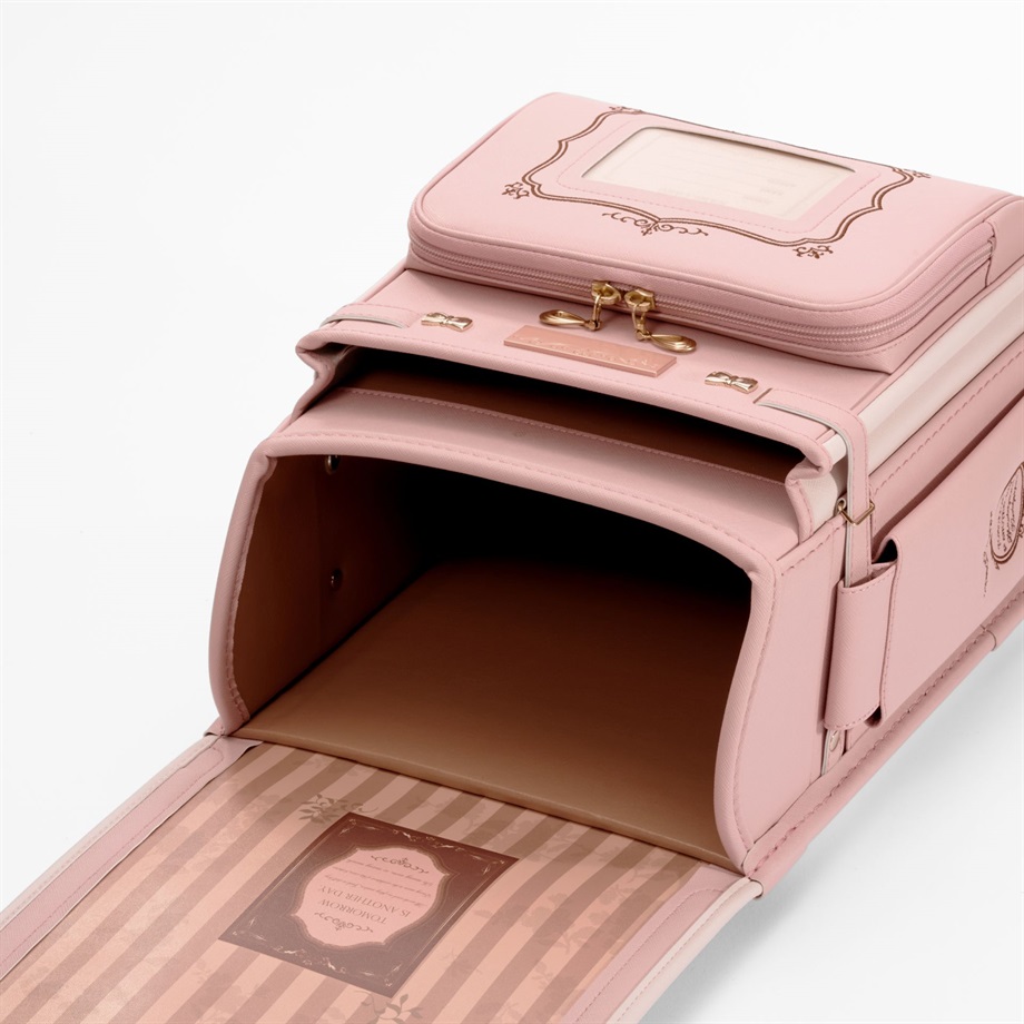 内装は、アンティークな雰囲気を醸し出す前ポケットとストライプ柄の内装。