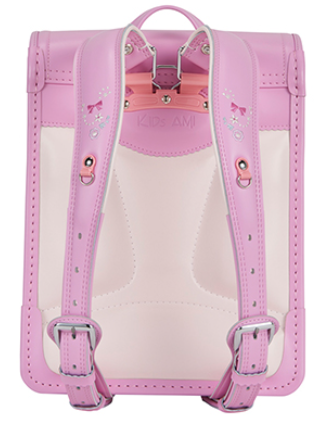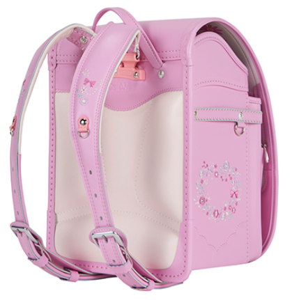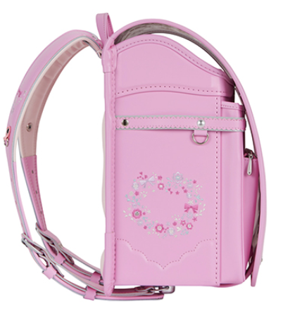 女の子向けデザインは、お花とリボンの刺繍やかわいいハート型鋲